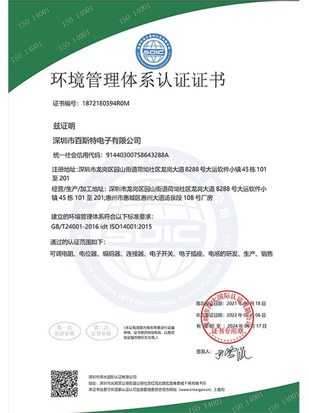 環(huán)境管理體系認(rèn)證證書